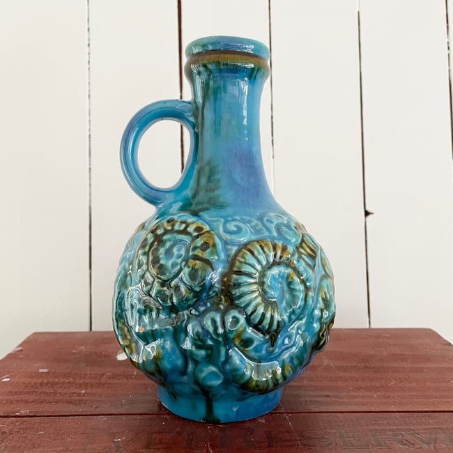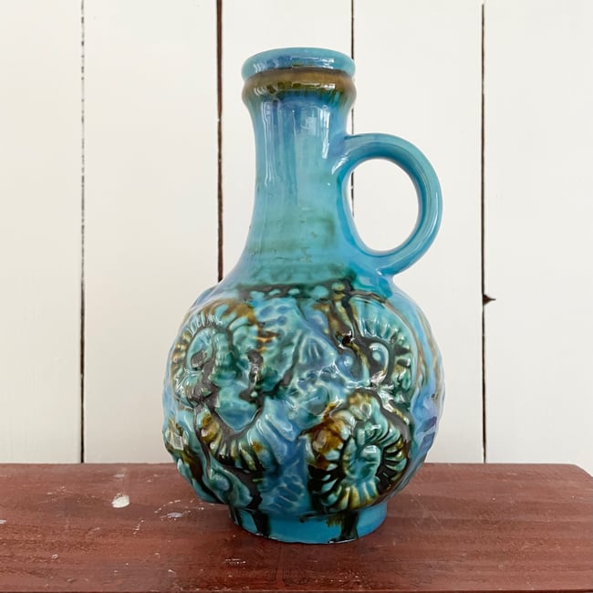 Stunning Mid Century Modern vase made by the famous Scheurich factory in West Germany. This vase has a gorgeous shape and a wonderfull vivid turquoise glaze with embossed design. The colour makes it highly collectible. 20cms in height and in excellent condition. DM for more photos. This piece can be posted or collected.